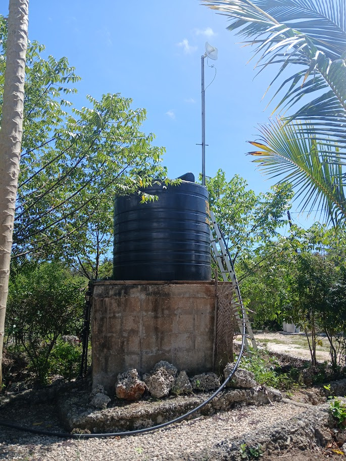 We harvest rain water to the underground water tanks and we also have a ground water well.  Fresh water is the most precious resource we have. The rain water harvesting system was one of the first things built here on the land and since its installation we have not had to rely on anything else. It is used for washing as well as for watering our plants.